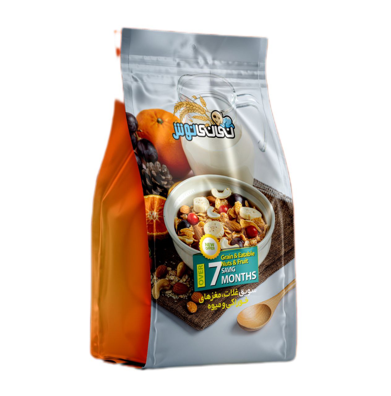 گرانولا محصولی کاملاً طبیعی و سنتی است که از ترکیب سویق گندم و جو دوسر برنج و پودر نارگیل و پودر بادام درختی و سیب و موز و خرما و سنجد تهیه شده است. این ترکیب غنی، مجموعهای کامل از ویتامینها، مواد معدنی و فیبرهای مورد نیاز بدن را تأمین کرده و نقش موثری در حفظ و تقویت سلامت عمومی ایفا مینماید.
